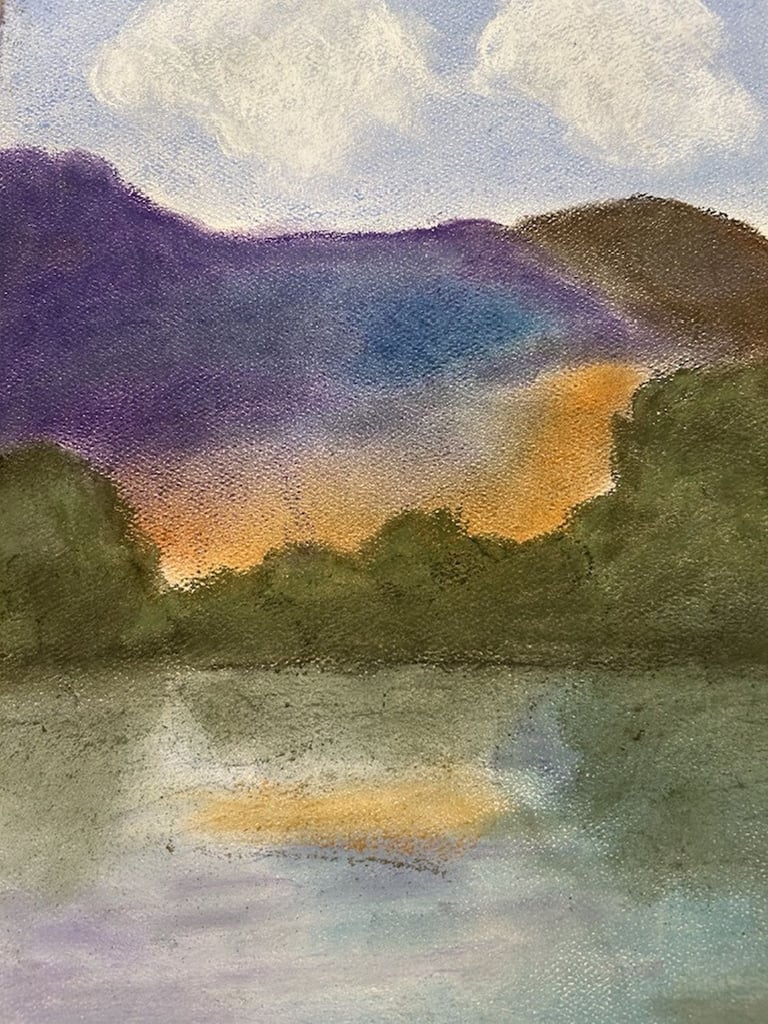 I create pastel paintings that capture the quiet beauty of nature with soft earth tones and clean lines.